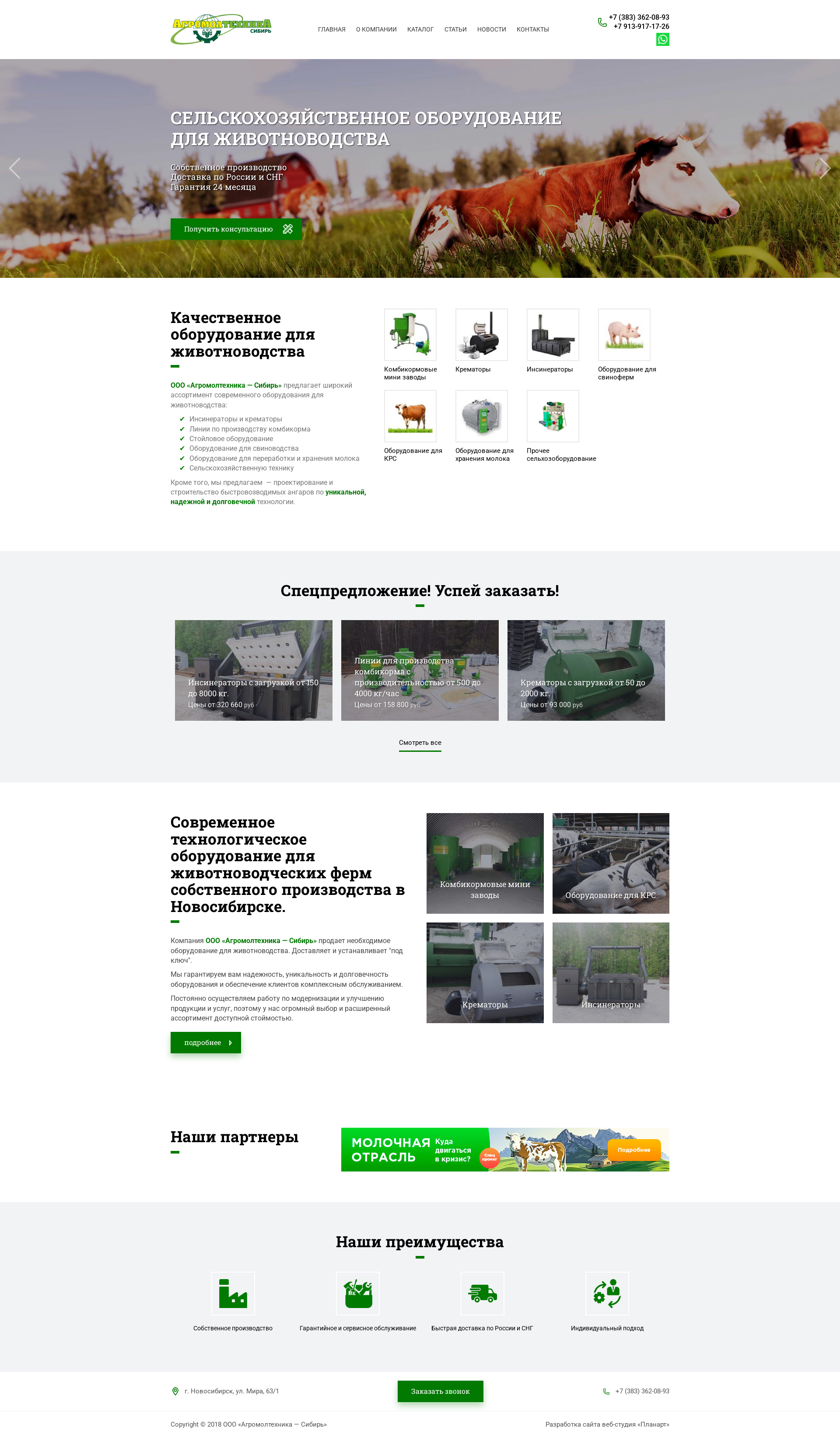 Корпоративный сайт для ООО "АгроМолТехника -Сибирь" , выполнен в срок, по Всем требованиям Заказчика. Специалисты веб - студии ПЛАНАРТ на сегодняшний день продолжают сотрудничество с компанией, а также оказывают консультацию по всем интересующим вопросам по сайту.