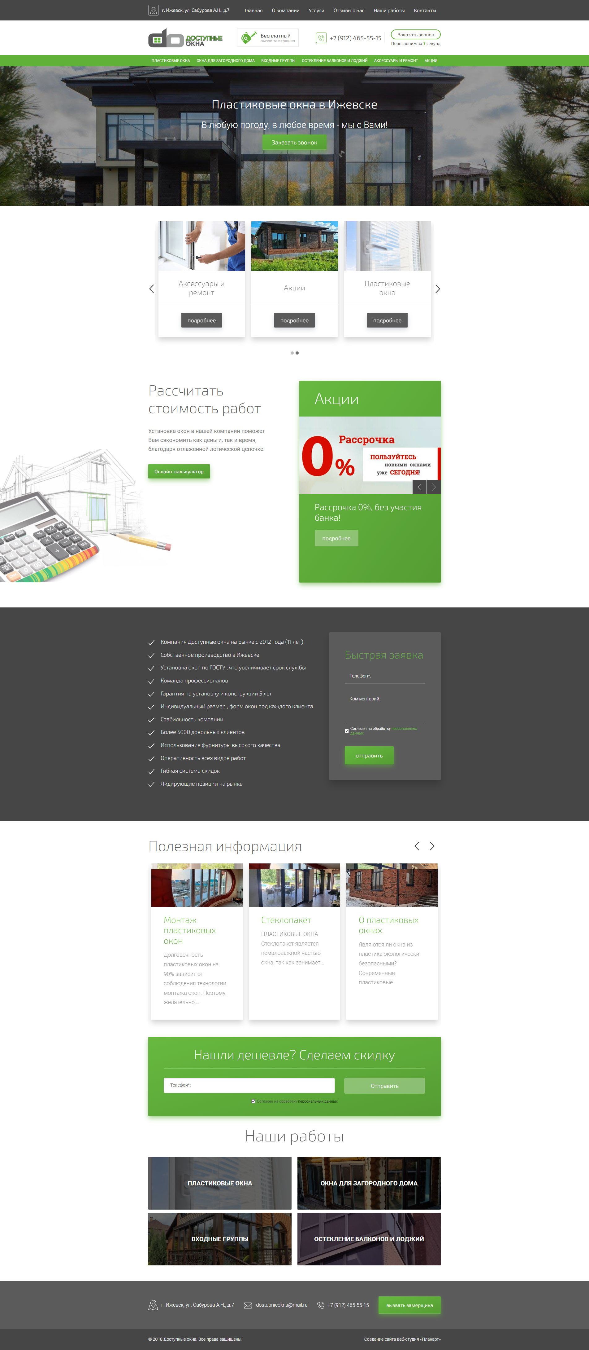 Корпоративный сайт для строительно-ремонтной компании "Доступные окна",выполнен в срок, по всем требованиям Заказчика. Специалисты веб - студии ПЛАНАРТ на сегодняшний день продолжают сотрудничество с компанией по поддержке и Seo продвижению.