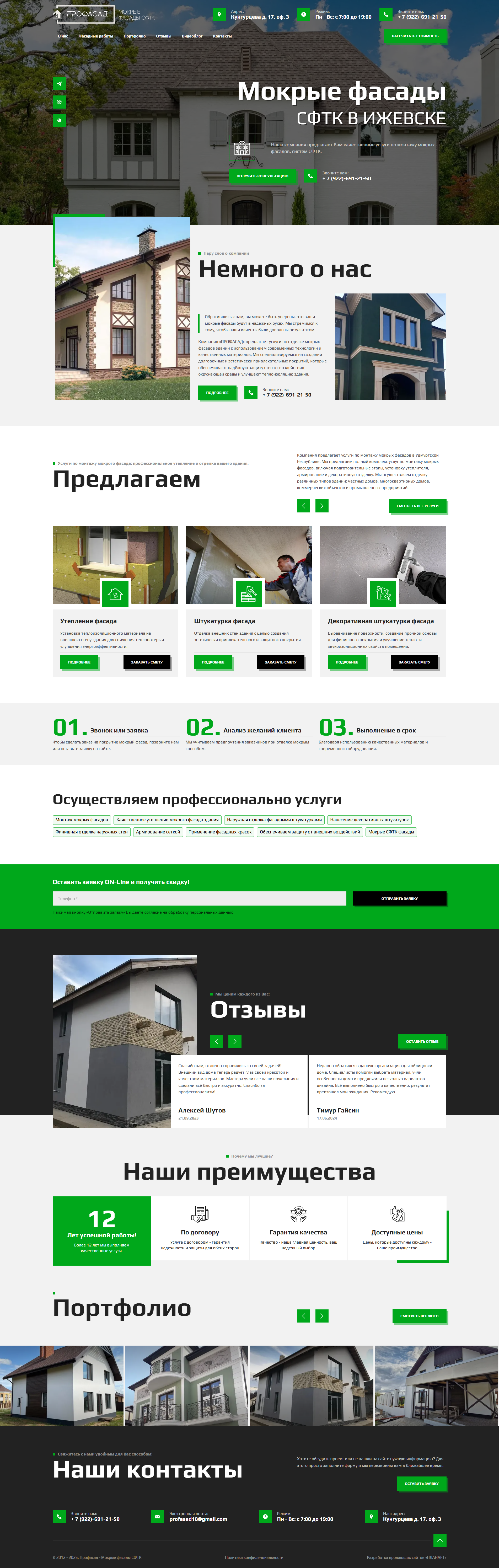 Разработка и программирование сайта для ООО "Профасад", компания предлагает услуги по отделке мокрых фасадов зданий с использованием современных технологий и качественных материалов, за 10 рабочих дней, стоимостью 70 000 руб.